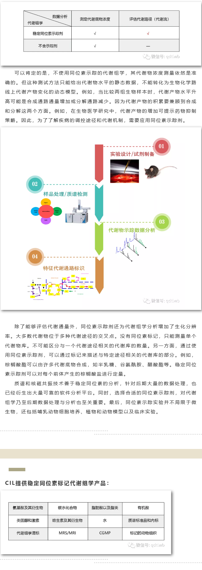 代謝組學有兩種形式,區(qū)別在于是否使用穩(wěn)定同位素示蹤劑。在沒有示蹤劑的情況下只能測定代謝物濃度,當使用穩(wěn)定同位素示蹤劑進行代謝研究時,可以評估代謝物濃度和路徑(即代謝流),后者對新陳代謝的研究更全面。