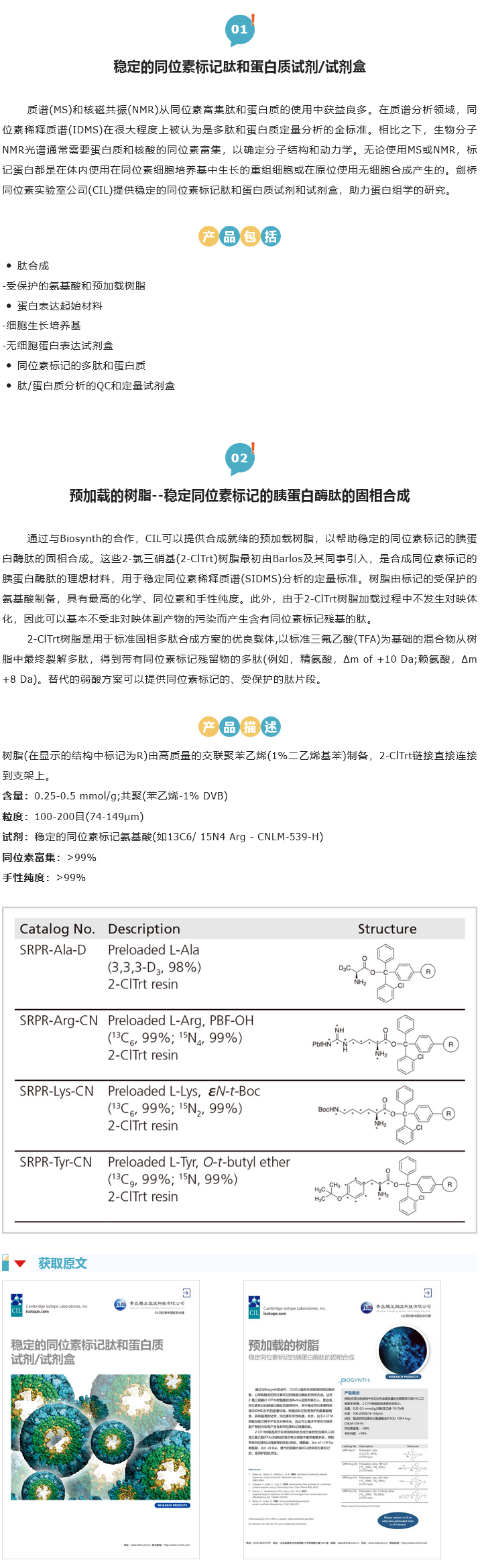 CIL提供各種特征良好,可變標(biāo)記,穩(wěn)定的同位素標(biāo)記起始材料,為了合成用于定量質(zhì)譜蛋白質(zhì)組學(xué)的高質(zhì)量多肽。其中包括受保護(hù)的和自由的氨基酸以及合成的預(yù)加載樹脂。