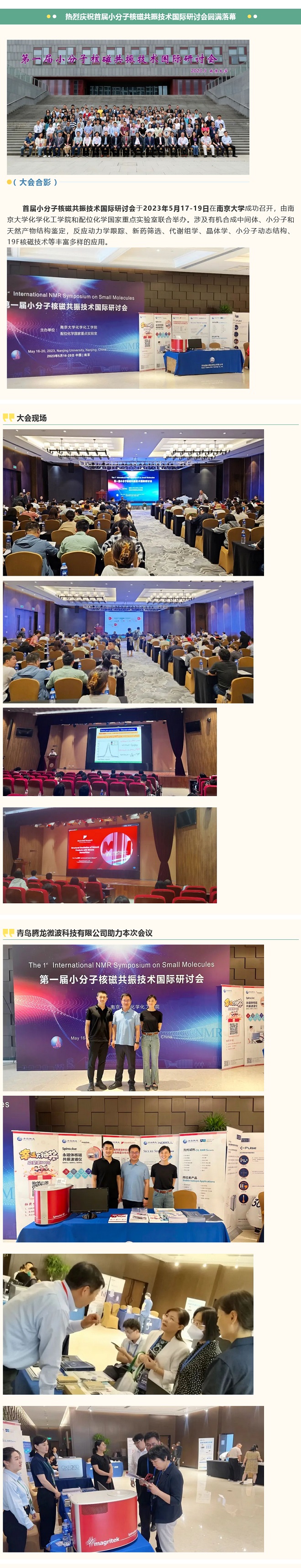 首屆小分子核磁共振技術(shù)國(guó)際研討會(huì)于2023年5月17-19日在南京大學(xué)成功召開,由南京大學(xué)化學(xué)化工學(xué)院和配位化學(xué)國(guó)家重點(diǎn)實(shí)驗(yàn)室聯(lián)合舉辦。涉及有機(jī)合成中間體、小分子和天然產(chǎn)物結(jié)構(gòu)鑒定,反應(yīng)動(dòng)力學(xué)跟蹤、新藥篩選、代謝組學(xué)、晶體學(xué)、小分子動(dòng)態(tài)結(jié)構(gòu)、19F核磁技術(shù)等豐富多樣的應(yīng)用。