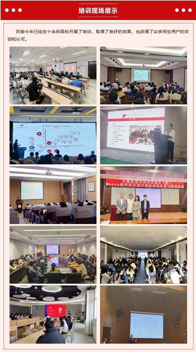 本次巡回培訓(xùn)講座,青島騰龍聚焦Mnova軟件“功能介紹/使用操作/問題答疑”等內(nèi)容,由專業(yè)的技術(shù)工程師們?cè)诙嗟赝瑫r(shí)展開,兼顧科研與企業(yè)。無論您在科研院所、還是在企業(yè),都?xì)g迎盡快與我們聯(lián)系,約定具體時(shí)間。我們將竭誠以赴,用最專業(yè)的技術(shù)提供最專業(yè)的培訓(xùn)/講座。