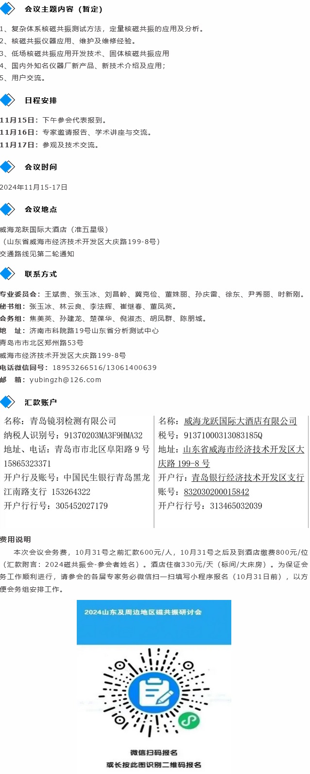 茲定于2024年11月15-17日在山東省威海市舉行“2024山東及周邊地區(qū)磁共振研討會”。本屆會議由山東省分析測試協(xié)會主辦,山東省分析測試協(xié)會磁共振專業(yè)委員會、青島市分析測試學(xué)會磁共振專業(yè)委員會及青島騰龍微波科技有限公司共同承辦,威海三角輪胎公司協(xié)辦。