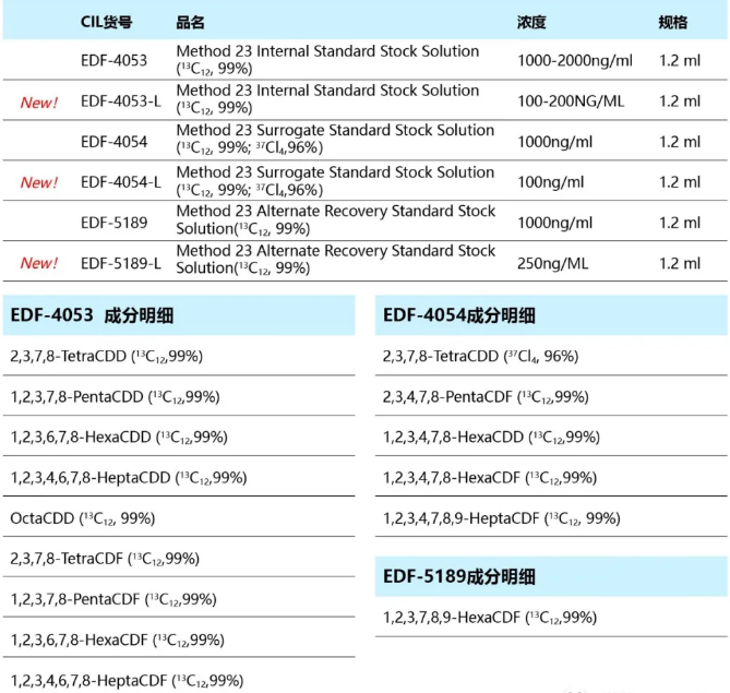 美國劍橋同位素實驗室公司(CIL)針對美國EPA Method 23方法,在原有產(chǎn)品基礎上推出了三款低濃度產(chǎn)品,歡迎咨詢采購。