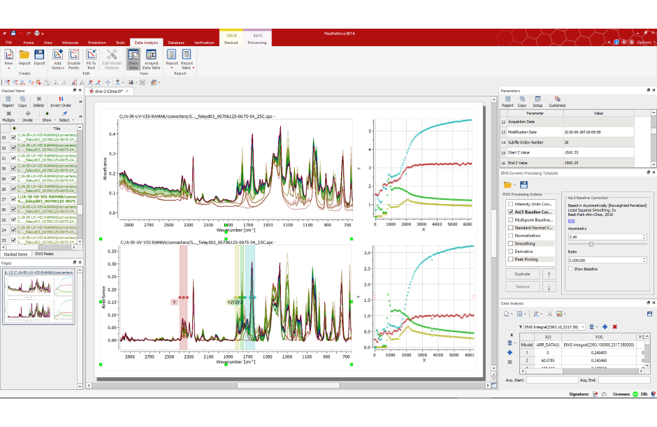 可視化、處理、分析和報(bào)告各種電子和振動(dòng)光譜的工具 Mnova ElViS是Mnova14中的一個(gè)新插件,用于光譜學(xué)數(shù)據(jù)(包括UV/Vis、NIR/MIR、Raman、fluorescence及其他光譜(100 nm to 100 μm))的處理分析。ElViS(Electronic Vibrational Spectroscopic)的名字簡(jiǎn)單概況了該軟件涵蓋的主要光學(xué)技術(shù)和光譜范圍。這一產(chǎn)品概念考慮了當(dāng)前光譜學(xué)的主要發(fā)展趨勢(shì),尤其是數(shù)據(jù)量的增長(zhǎng)、光譜的多元定量分析、從實(shí)驗(yàn)室分析到工業(yè)分析的明顯轉(zhuǎn)變、多光譜和關(guān)聯(lián)技術(shù)的發(fā)展以及光學(xué)傳感的新進(jìn)展。 > 獲取license |