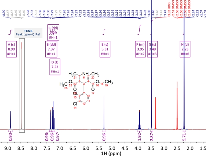 點(diǎn)擊一下“Advised Analysis”按鈕即可獲得純度結(jié)果。此功能將首先找到您的參數(shù)(分子量、樣品重量、參考化合物等),然后應(yīng)用優(yōu)化設(shè)置進(jìn)行NMR分析,最后計(jì)算化合物的純度。