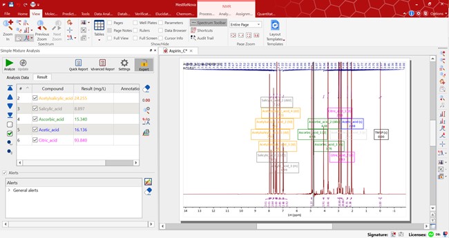 SMA可以自動創(chuàng)建濃度和純度測定的標準方程式 創(chuàng)建您自己的定制的目標混合物分析實驗 可以使用多種Mnova積分方法,包括強大的qGSD 手動檢查化合物的組分,并輕松更改計算所用的多重峰 與潛在組分的數(shù)據(jù)庫交互,以“即時”構(gòu)建特定于樣本的分析 可以對SMA工作流實現(xiàn)批處理或?qū)崟r處理(Mgears SMA) |