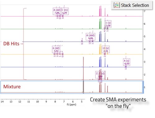 從您的Mnova DB導(dǎo)入化學(xué)位移范圍、質(zhì)子數(shù)和分子量,點擊幾個按鈕即可構(gòu)建SMA實驗!